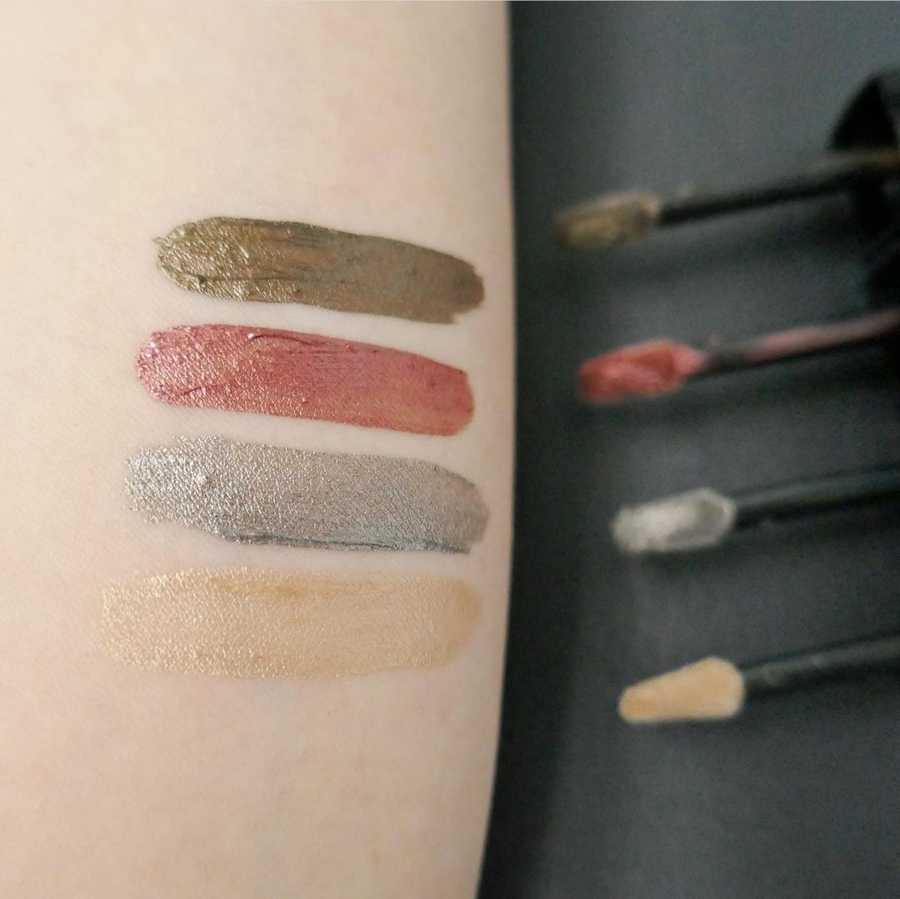 Cвотчи жидких теней. Скрин из соц.сетей. Сверху вниз: 1) оттенок 33; 2) оттенок 35; 3) оттенок 37; 4) оттенок 39.