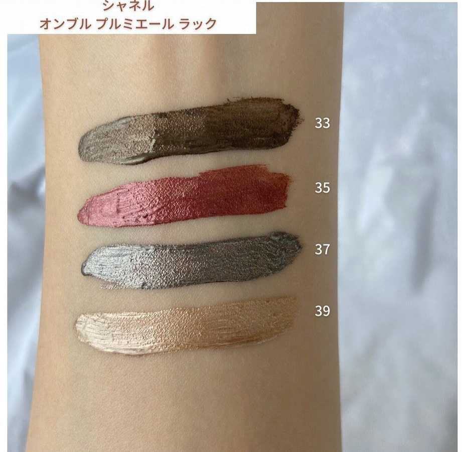 Жидкие тени Ombres Première Laque Сhanel Fall-Winter 2021. 1) оттенок 33, 2) оттенок 35; 3) оттенок 37; 4) оттенок 39. Скрин из соц.сетей.