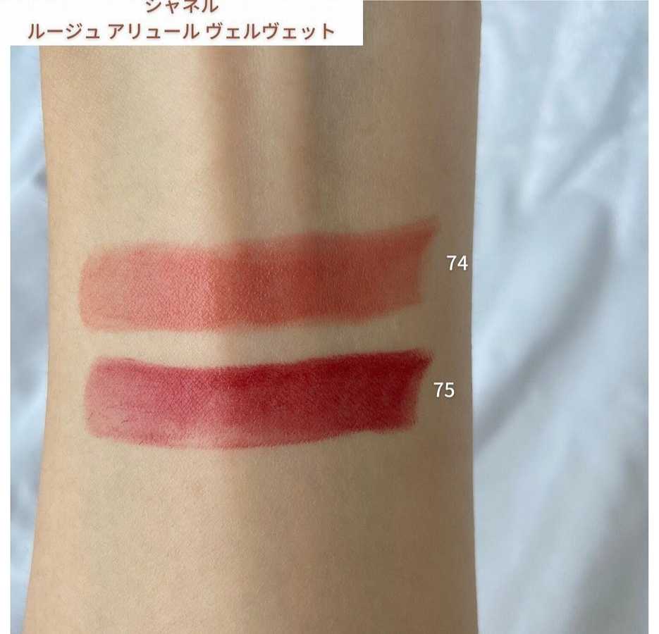 Помада Rouge Allure Velvet в предстоящей коллекции будет представлена в двух лимитированных оттенках. На новых фото оттенок 74 выглядит очень деликатным и нежным коралловым оттенком, а оттенок 75 близок к классическому красному.