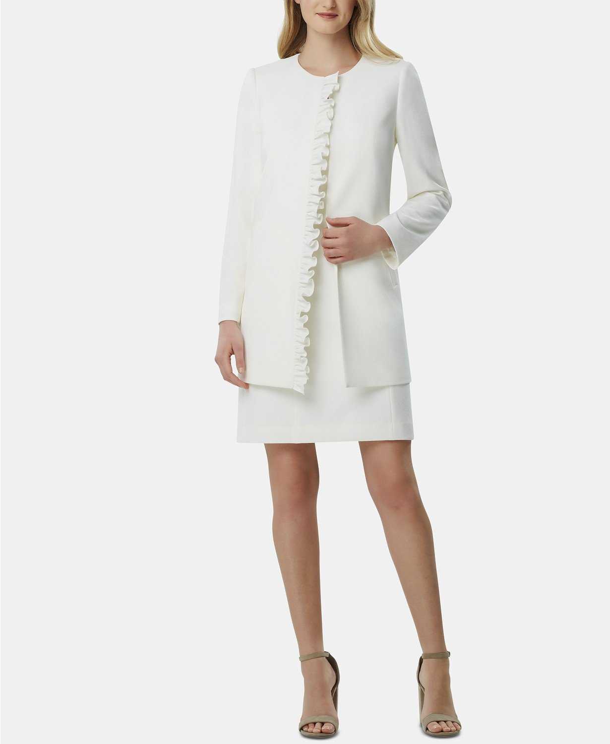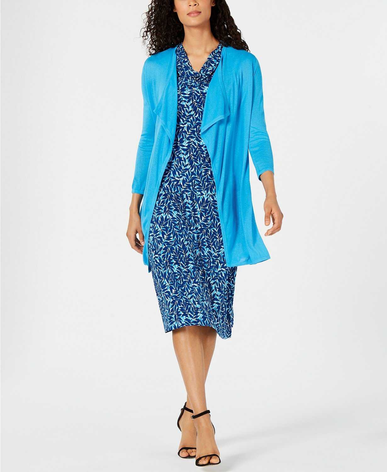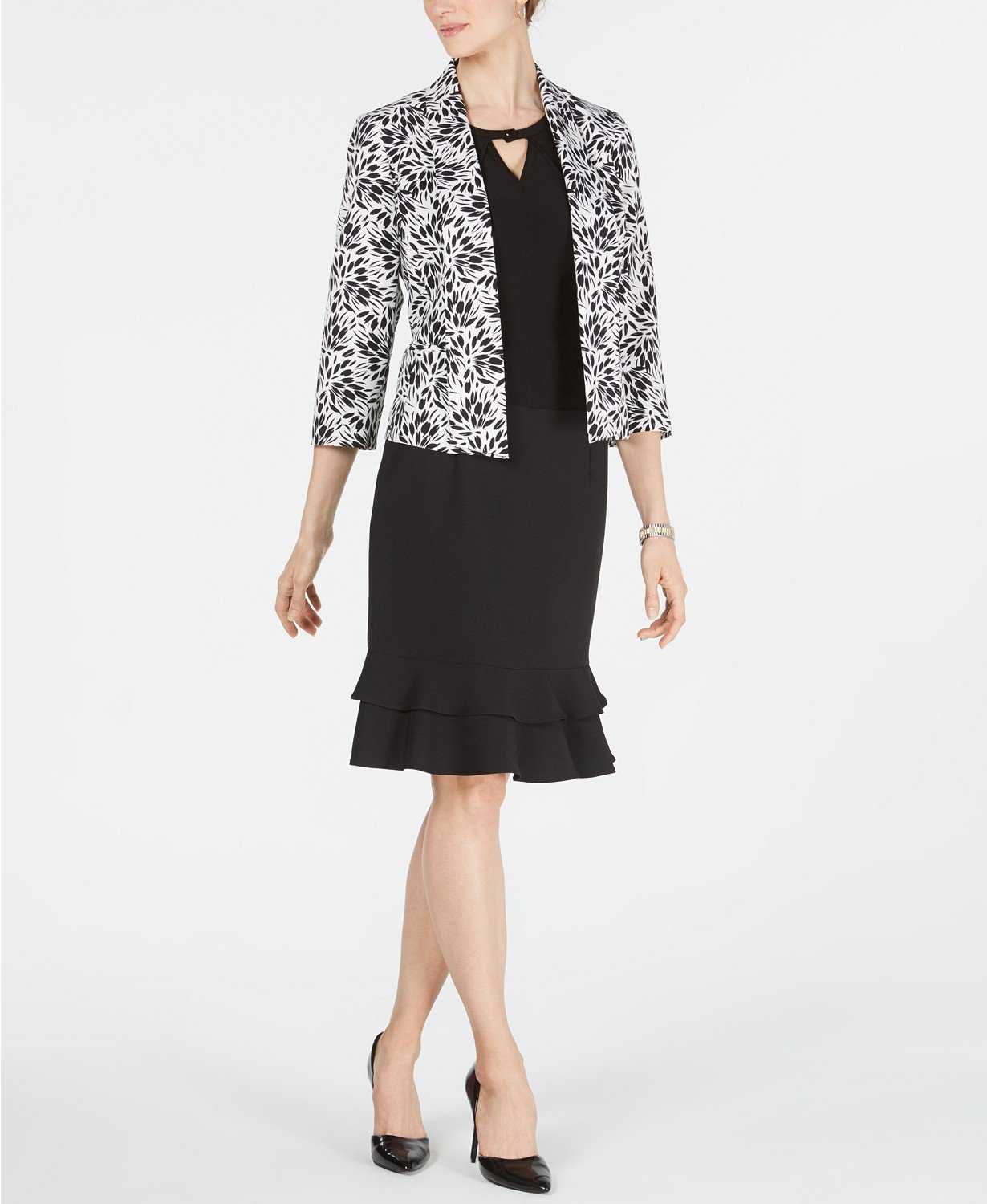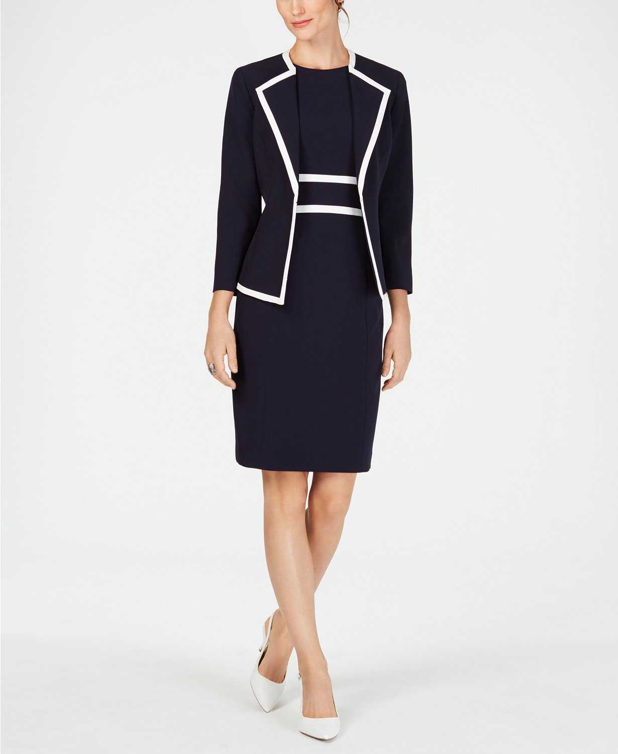 В моде разнообразные платья, которые комбинируются с пиджаком или жакетом. Для вечернего образа это очень подходящий костюм.