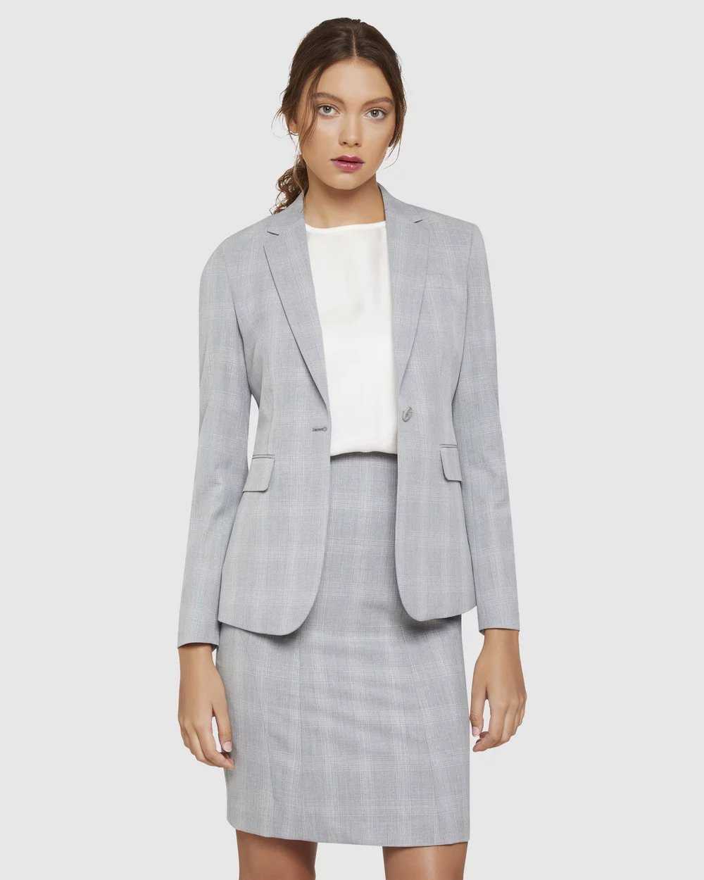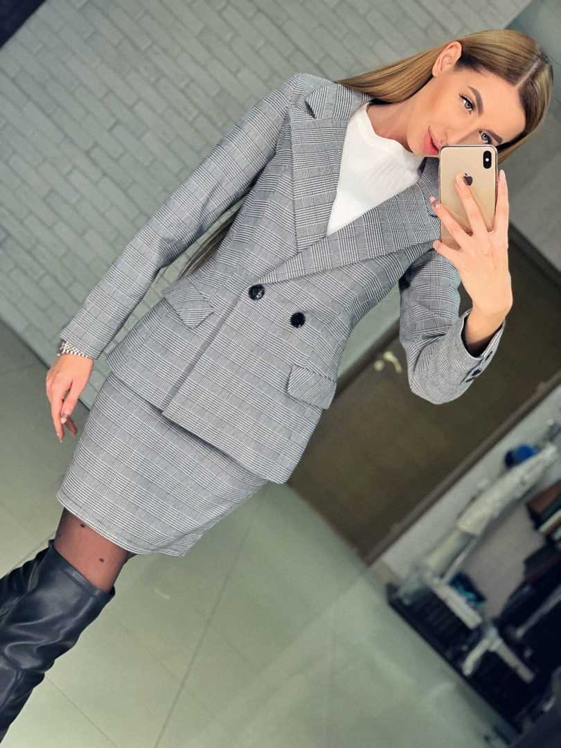 Если на работу женщина надела рубашку и юбку, то этот образ обязательно должен быть дополнен жакетом. Не нужно стеснять и выбрать принт в мелкую клетку или полоску. Так лук станет поистине деловым.