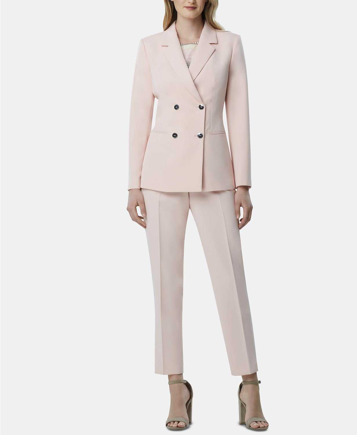 Женщины с фигурой «восьмерка» имеют одинаковые пропорции груди и бедер, а также хорошо выраженную талию. Поэтому к месту будет костюм, который подчеркивает женственность и соблазнительность пышных форм. Это может быть комплект как с юбкой, так и с брюками.