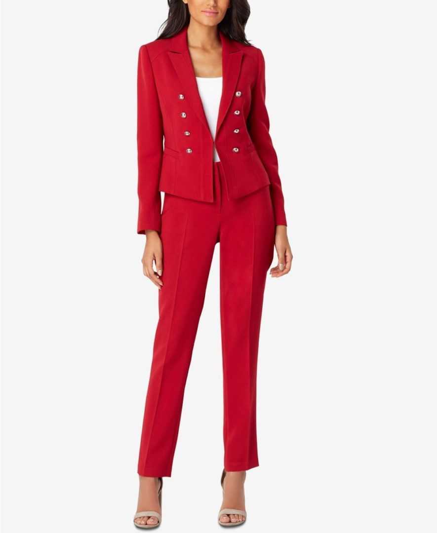 Такой костюм сразу привлечет внимание. Можно выбрать любой оттенок красного, а также крой костюма