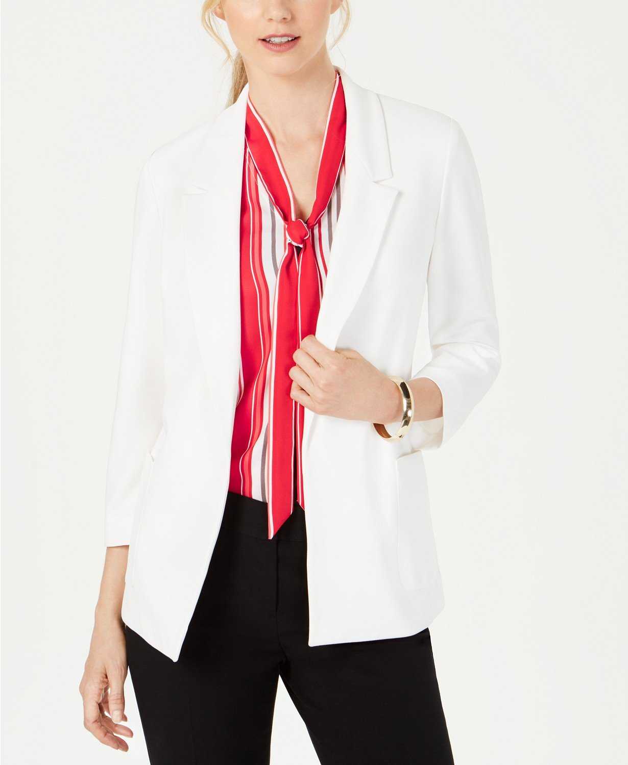 Главным недостатком девушек с фигурой «прямоугольник» является отсутствие талии. Поэтому оптимальным выбором будет удлиненный жакет, который не сильно прилегает к телу. Это может быть одно- или двубортная модель, с любой формой лацканов.