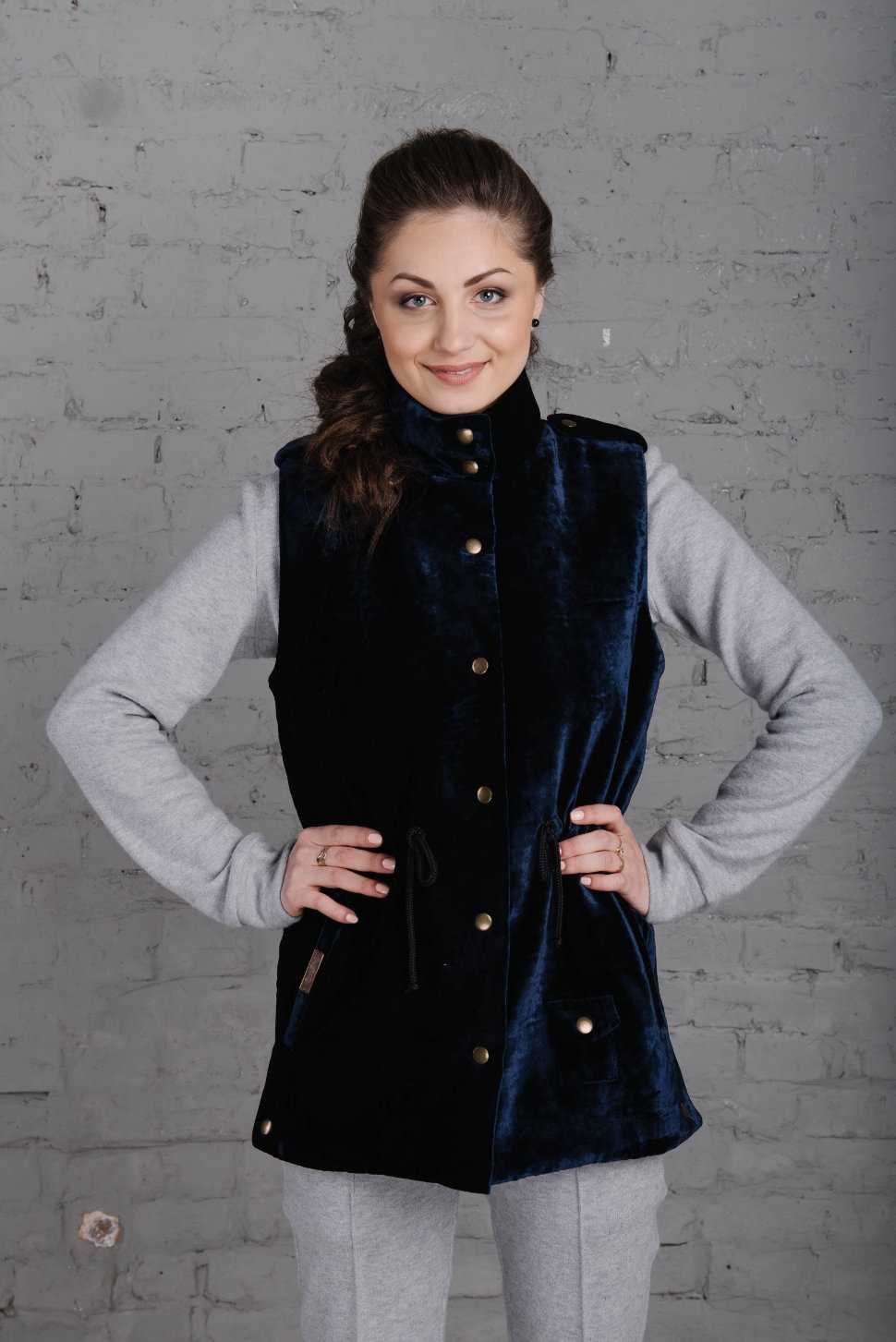 Замшевые и бархатные жилеты фавориты дам светского типа. Подчеркивают элегантность и изысканность. Украшением в основном служат ремни, пуговицы и карманы. Без всякой лишней атрибутики.