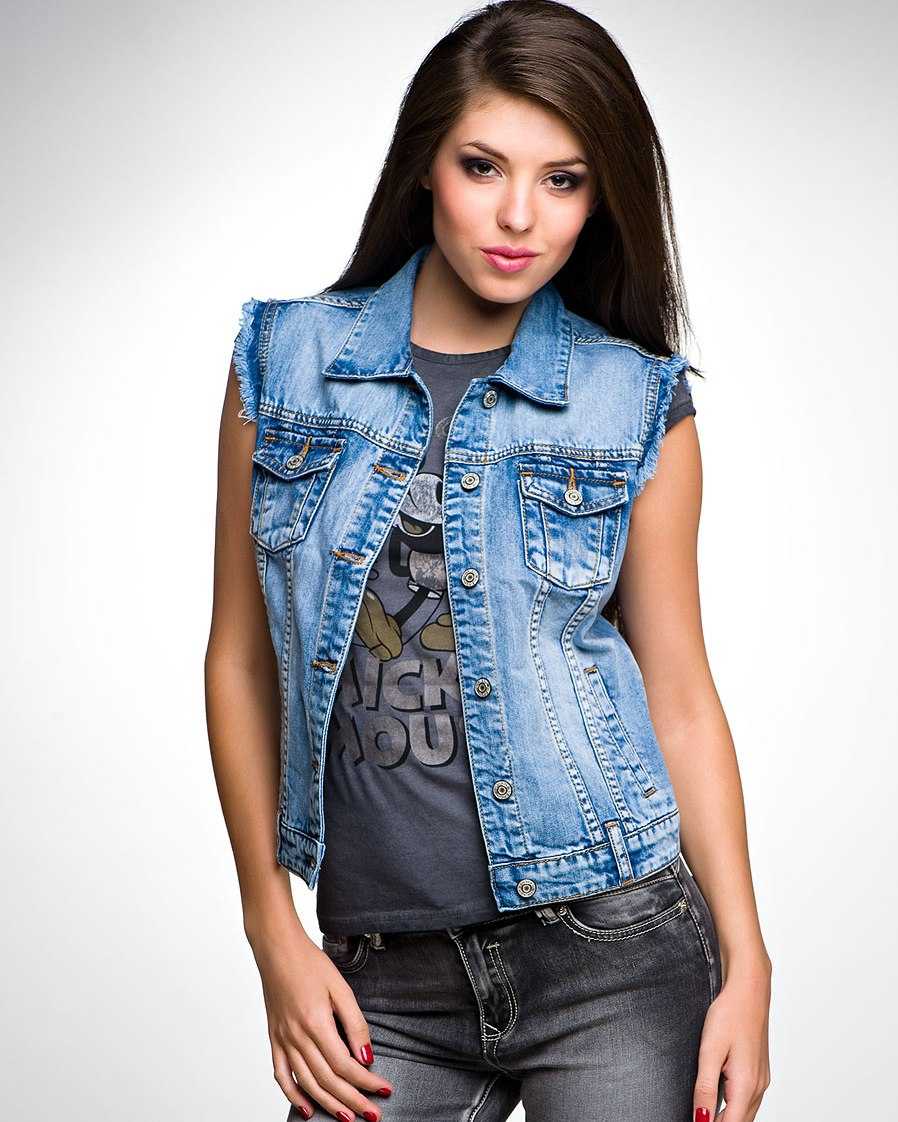 Такой тип верхней одежды прекрасно сочетается с приталенными длинными платьями, делового стиля и вечернего. Конечно, нельзя пройти мимо жилетки из денима. Потрясающий весенний вариант, подходящий коротким рваным шортам и кедам.