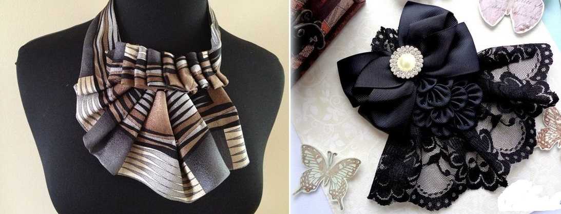 Но романтические и повседневные сочетания можно дополнить и яркими рубашками. Более женственно и эффектно смотрится женская блузка с галстуком. И если у изделия нет воротника или вырез горловины лодочка, то актуальным будет жабо или красивый платок. На элегантную стоечку можно надеть лаконичную бабочку, бант или классический вариант