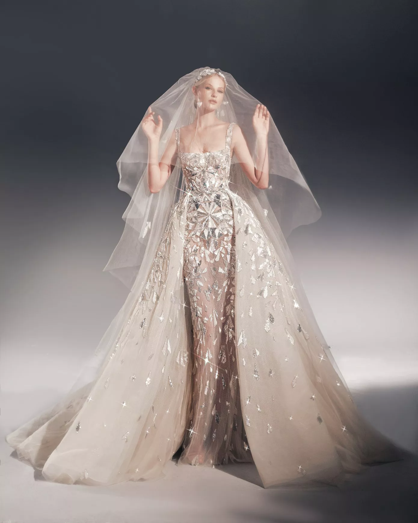 The Material: Silk tulle, crystals, and sequins
