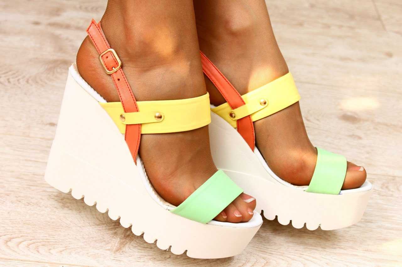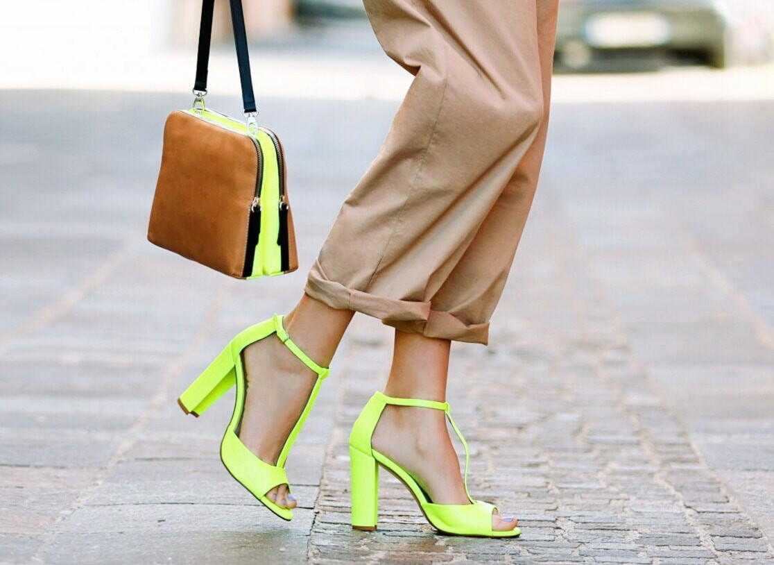 Неоновые оттенки. Кроме классической черно-белой гаммы, в моде также будут и женские босоножки кислотных неоновых цветов