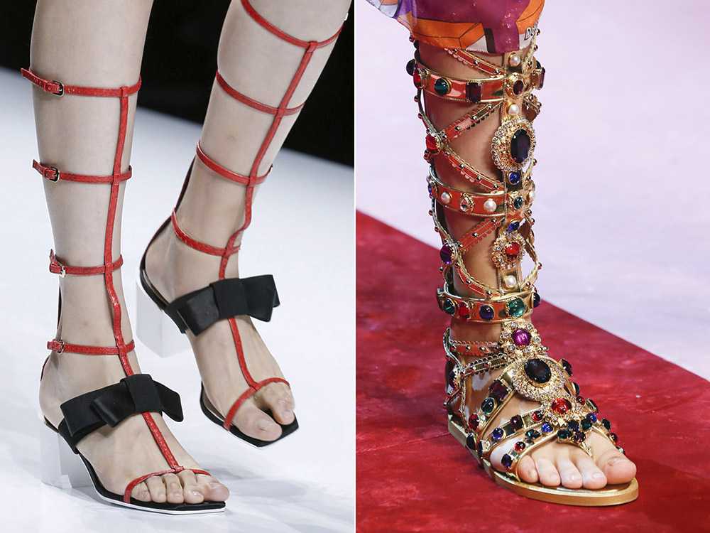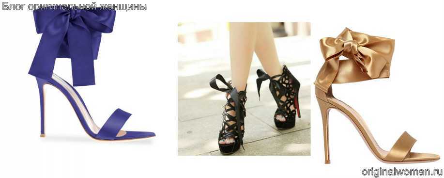 Завязки. Летом в тренде будут и модели с завязками. Они подчеркивают красоту женских ножек и гармонично вписываются в любой лук. Что касается фасонов, то нынче можно встретить изделия как на шпильке, так и повседневные варианты без каблука. К сожалению, обувь с завязками подходит не всем девушкам. Невысоким представительницам прекрасного пола от таких босоножек лучше отказаться, поскольку они делают силуэт диспропорциональным.