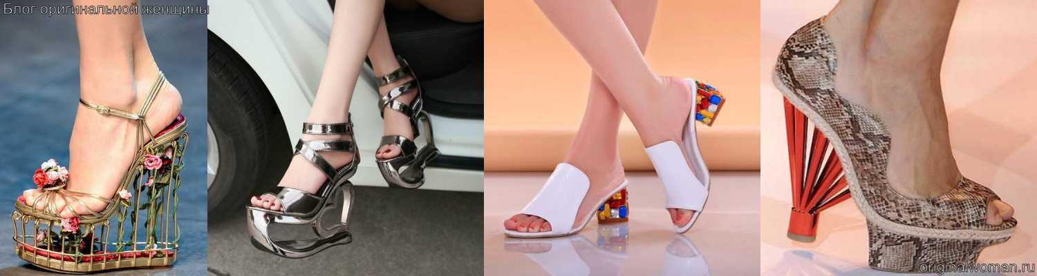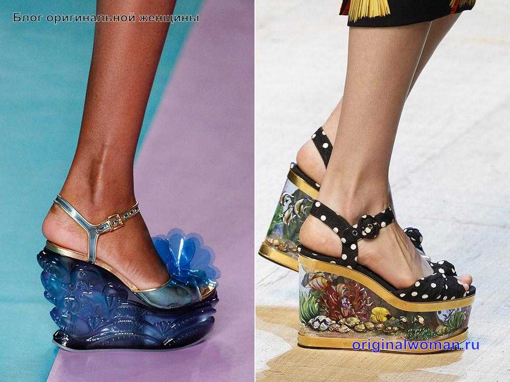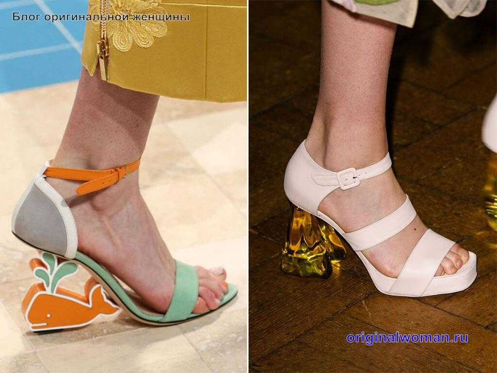 Хит сезона – прозрачный каблук в виде рога. Модели подчеркивают элегантность, изящество женских лодыжек. Обязательно используются высокие варианты, которые станут стильным дополнением к деловым, вечерним нарядам.