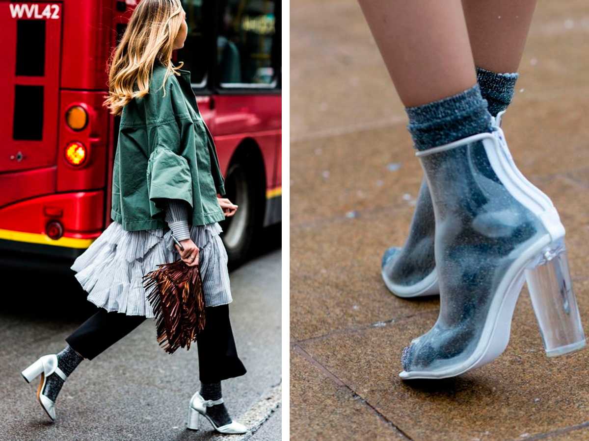 Мы уже упоминали, что босоножки с носками больше не считаются примером дурного вкуса. Напротив, многие марки предлагают смелые комбинации изящных босоножек с грубыми носками из серой шерсти.
