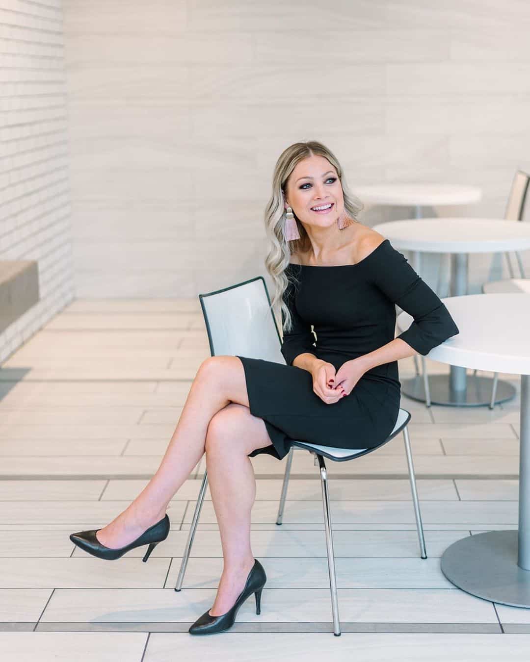 Обувь. Выбирайте туфли на шпильках и открытые носки с минимальным воздействием на ноги. Не выбирайте слишком простые балетки, шлепанцы или кроссовки, которые придают образу слишком непринужденный вид. Альтернативой высоким каблукам могут быть коричневые мокасины или лоферы.