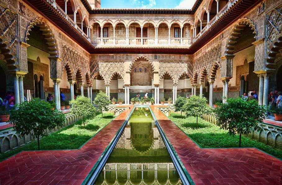 - Дворец Алькасар (Дворец Педро жестокого) в Севилье, XIV в., стиль мудехар;