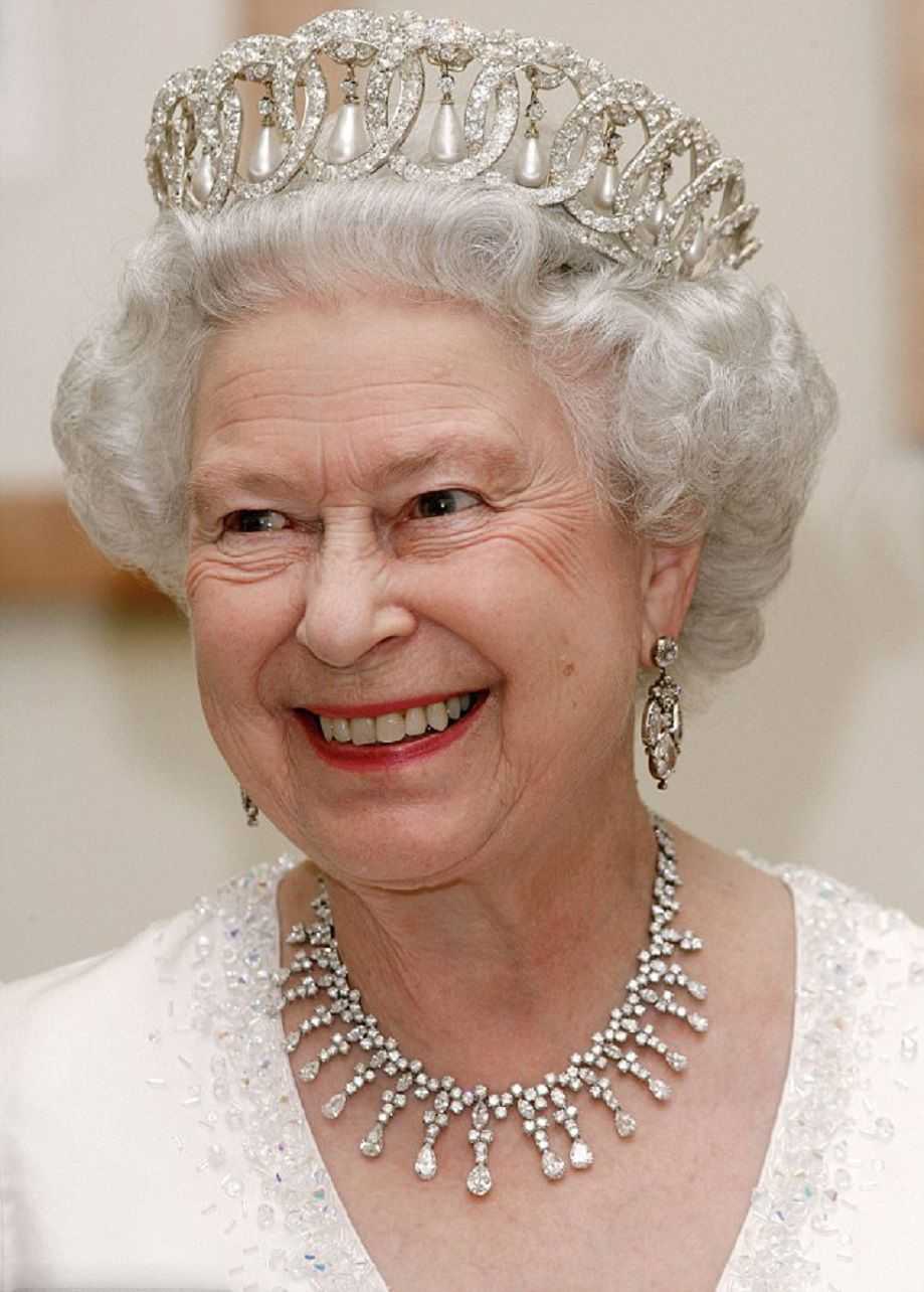 Наряд Елизаветы II привлёк внимание публики полупрозрачным верхом, крупным жемчугом на шее и тиарой с бриллиантами, напоминавшей русский кокошник