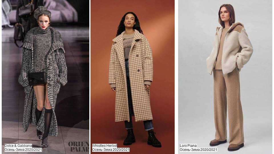 пальто оверсайз, с необычными принтами или асимметрией. В моде также изделия с