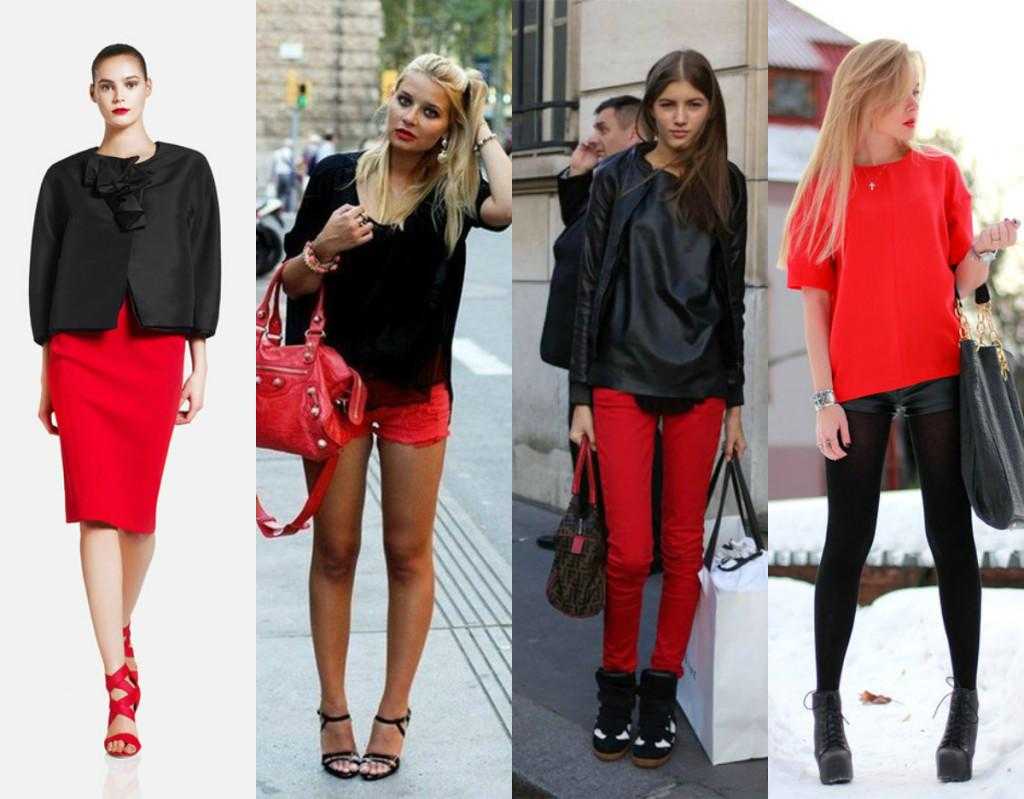 Черный сочетается с разными вещами из базового гардероба. Символ безупречного стиля — комбинация черного с синим. Одежда в красном цвете подойдет для торжественных мероприятий. С бежевым создает нежную, утонченную композицию.