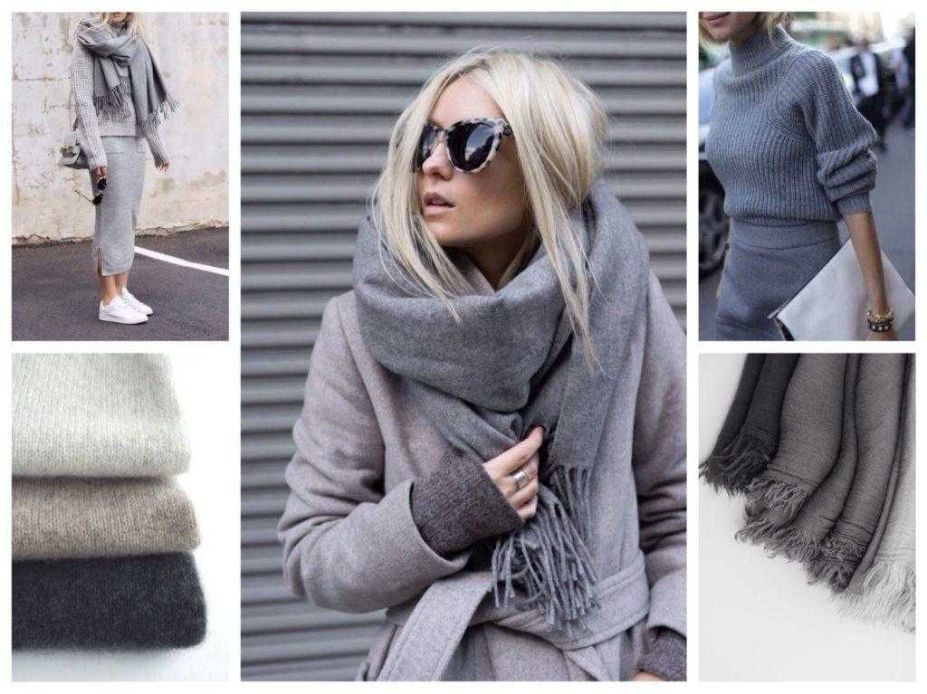 Например, в осенний и зимний сезон выглядеть элегантно поможет красивый не сильно объемный шарф, заплетенный особый узлом вокруг шеи.