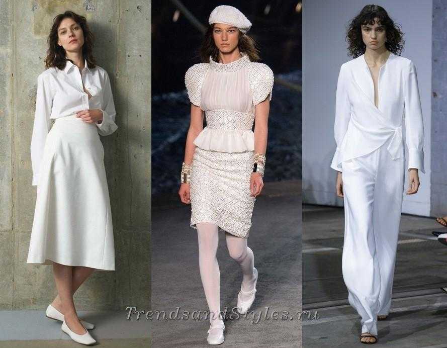 На базе белого формируется любой образ — от романтического до контрастного или строгого. Он отлично сочетается с синим, красным и черным оттенками.