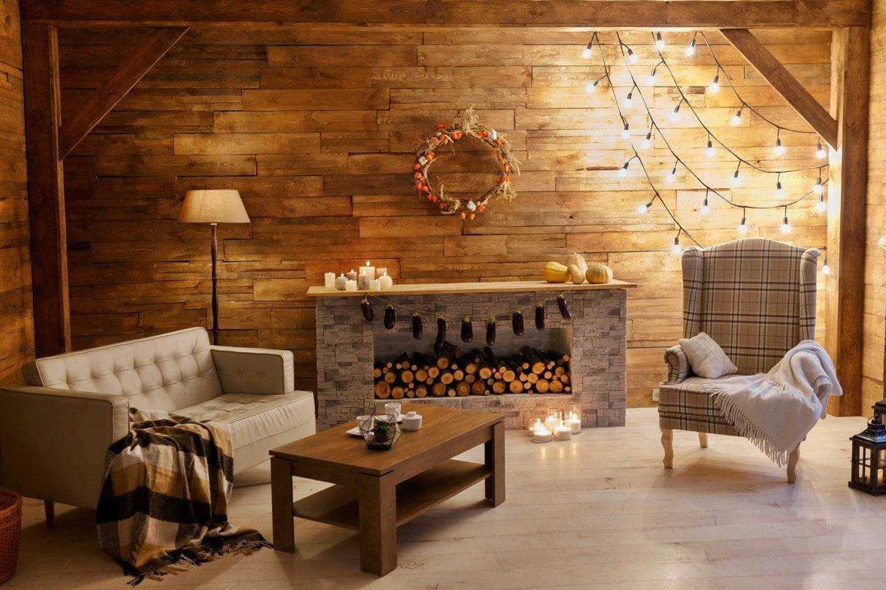 - Использование натуральных материалов. Мебель преимущественно деревянная, посуда — керамическая. В декоре применяются природные материалы: листья, сушеные цветы и растения, шишки, ветки, ягоды и прочее.