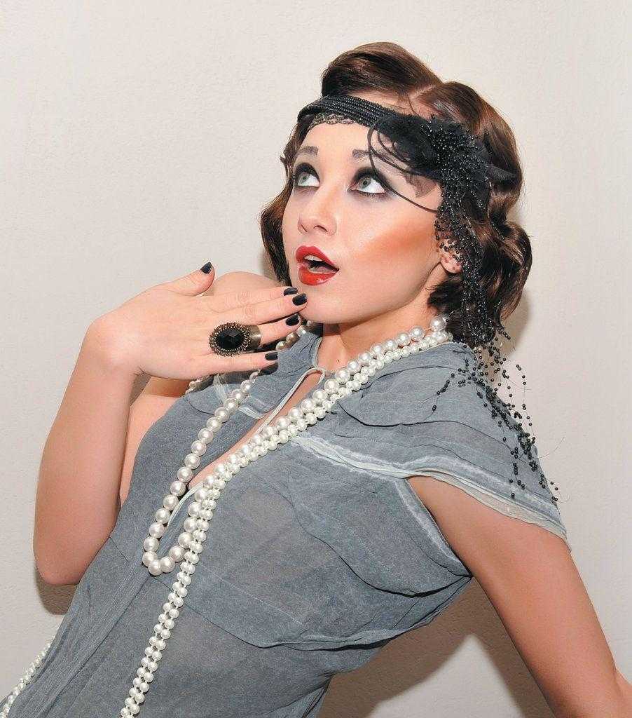 Из аксессуаров самой модной считалась длинная нитка жемчуга. Также приветствовались боа из перьев, накидки из меха, длинные перчатки, маленькие облегающие шляпки и блестящие клатчи. Завершающим штрихом считался макияж, который отличался в то время обилием светлой пудры. Яркими цветами на лице выделялись губы, брови, глаза.