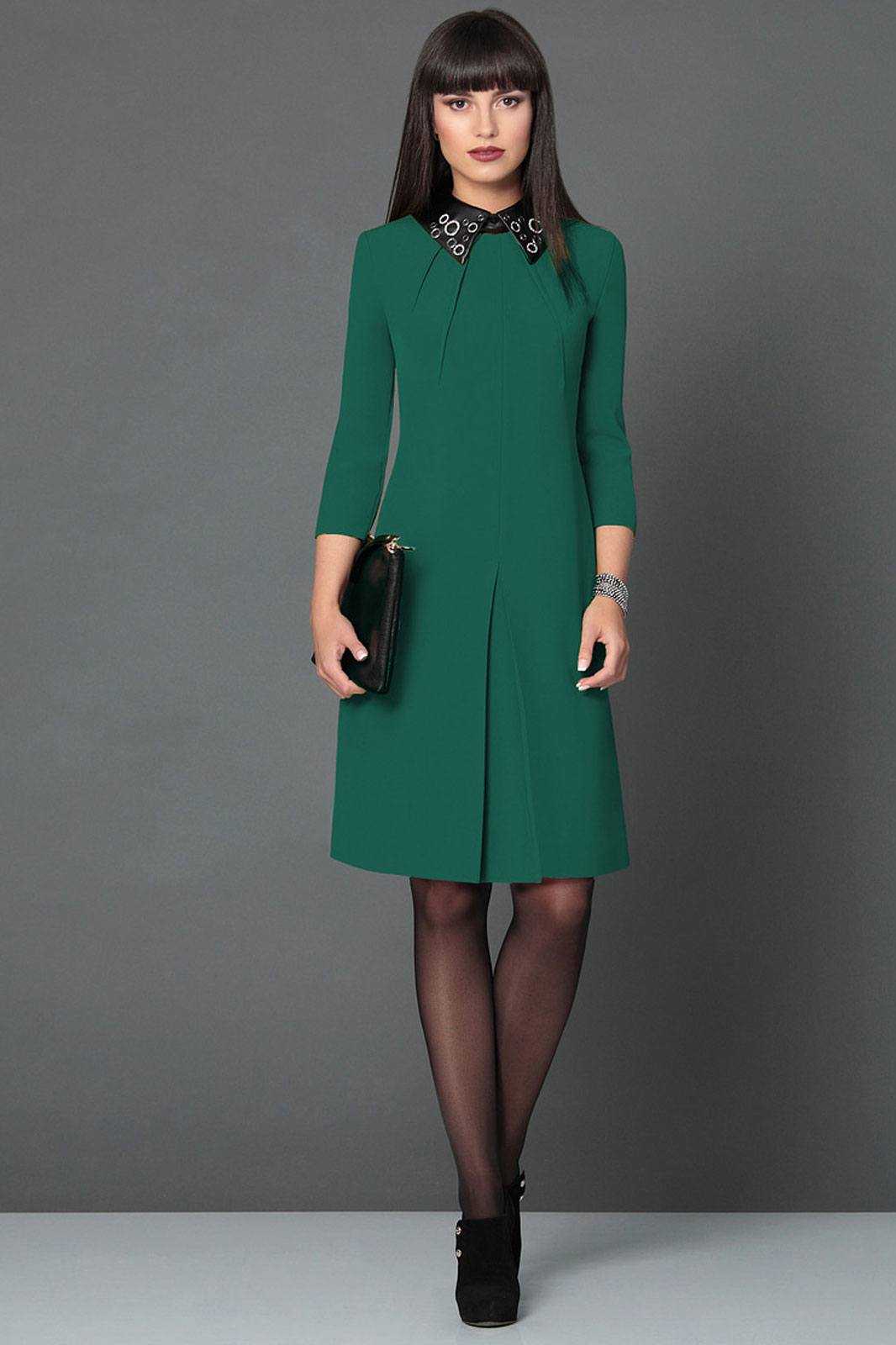При выборе офисного платья или сарафана в 2016 году следует останавливаться на спокойных тонах – сером, черном, бежевом и зеленом.