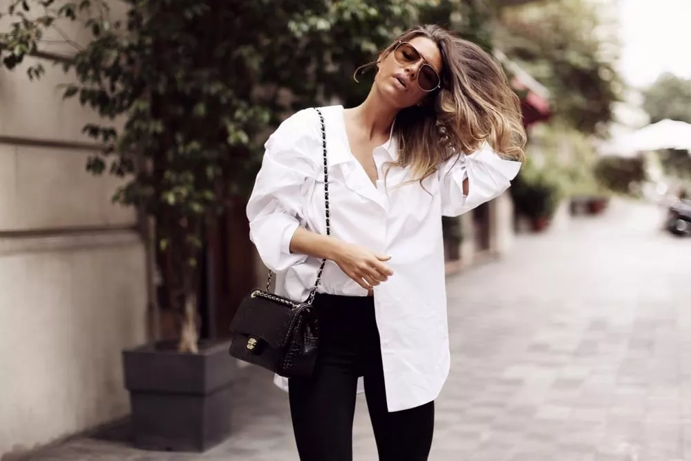 Рубашка оверсайз – это вещь, которая по размерам напоминает предмет гардероба вашего парня. Кстати, как вариант, вы можете одолжить рубашку и у него. Носите ее, не заправляя в джинсы, брюки, шорты, капри, юбки средней длины. А если вы хотите создать более интересный образ, попробуйте надеть широкую рубашку на платье-комбинацию. Для деловой встречи сочетайте рубашку без узоров с гольфом или топом.