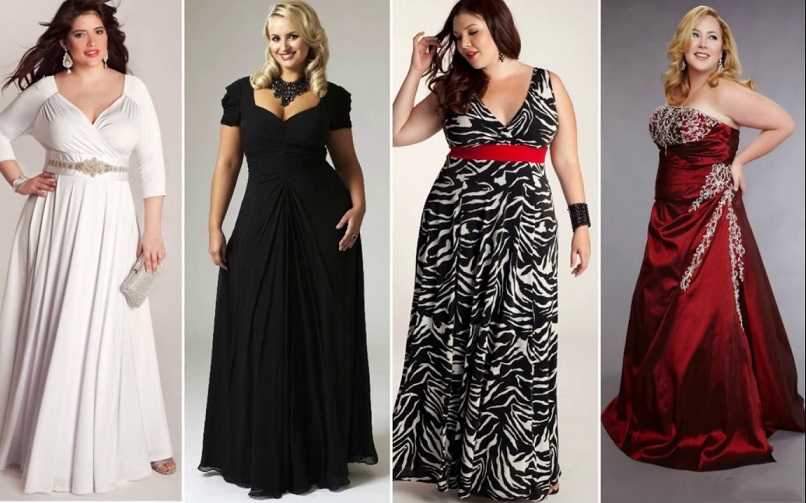 Представительницам прекрасного пола с пышными формами лучше всего обращать свое внимание на платья в пол с глубоким декольте и рукавом в три четверти. Такие модели немного отвлекут внимание от маленьких недостатков фигуры и сделают верхнюю часть женского тела более легкой
