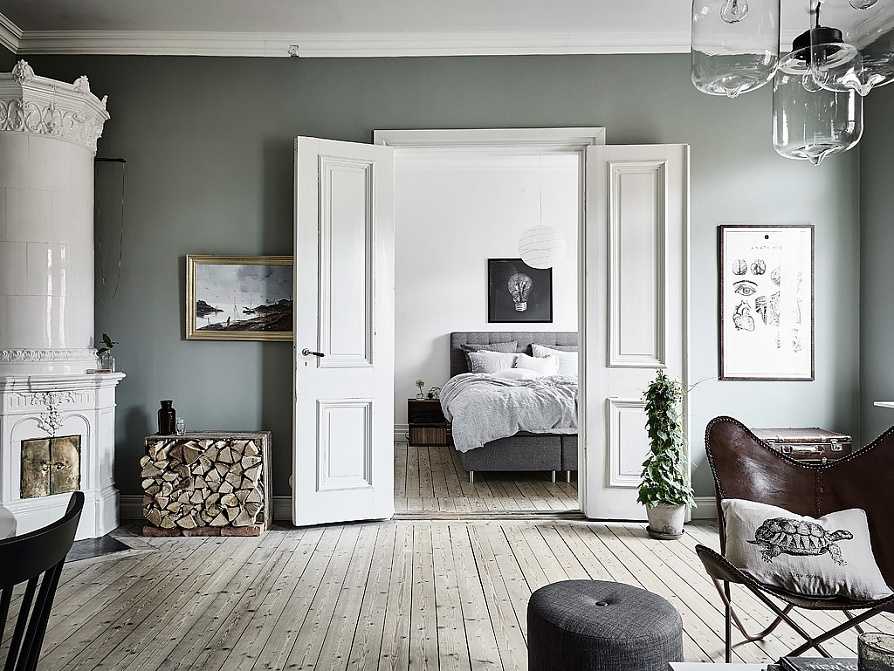 - Декоративное оформление стен. Выбирайте дерево, чтобы оформить яркие или наоборот черно-белые фотографии, необычные коряги, композиции из веточек идеально впишутся в скандинавский интерьер. Одну из стен можно сделать грифельной, чтобы каждый день рисовать новые пейзажи или абстракцию, писать напоминания или пожелания на целый день. Повесьте на стену яркие текстильные шторы, имитируя занавес окон или текстильные панели пастельных тонов. Такие дизайнерские ходы помогут выделить определенные зоны, сделать яркие акценты и немного освежить или даже осовременить квартиру или дом. Оформляя стены, не забывайте о растительном принте, который не только сейчас в моде, но и подчеркнет принадлежность скандинавского стиля к природе.