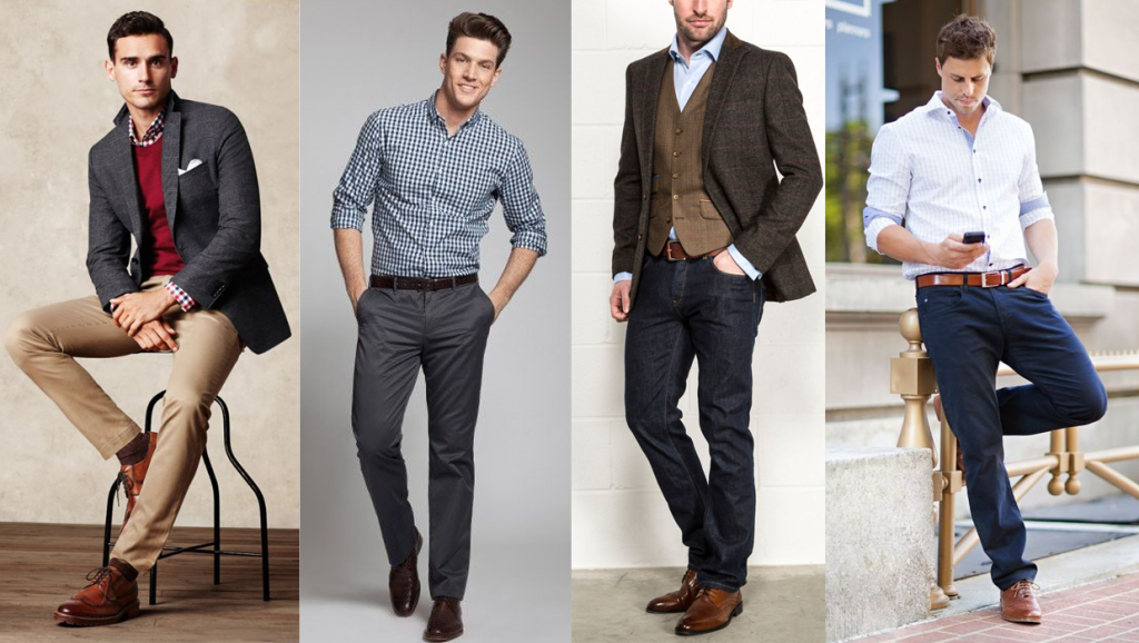 По фото узнают отличительные черты стиля одежды smart casual. Направление выбирают активные деловые люди, предпочитающие комфортную одежду для повседневности. Даже если в гардеробе находятся только базовые вещи, рекомендуют составить несколько комплектов для выхода в город. Стиль тяготеет к многогранности, но не терпит пафоса.