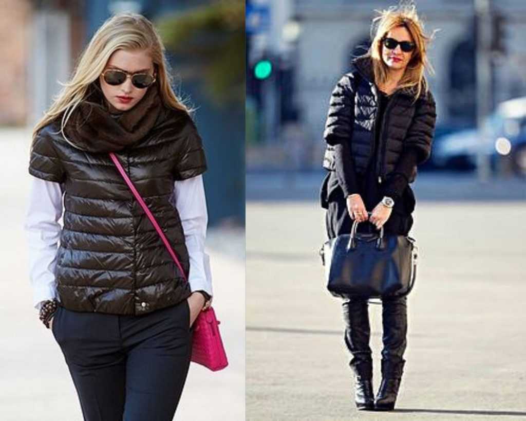 Короткие пуховички без капюшона также популярны. К ним хорошим дополнением будут джинсы, кожаные штаны, брюки клеш. Лёгкий и спокойный образ на каждый день: с курткой надеть тёмные скинни и водолазку черного или бежевого оттенка. Напомним, что скинни – это обтягивающие джинсы не только в бедрах, но и в области колен и щиколоток. Неслучайно имеют название «вторая кожа»: с ней отлично комбинируется спортивный пуховик.