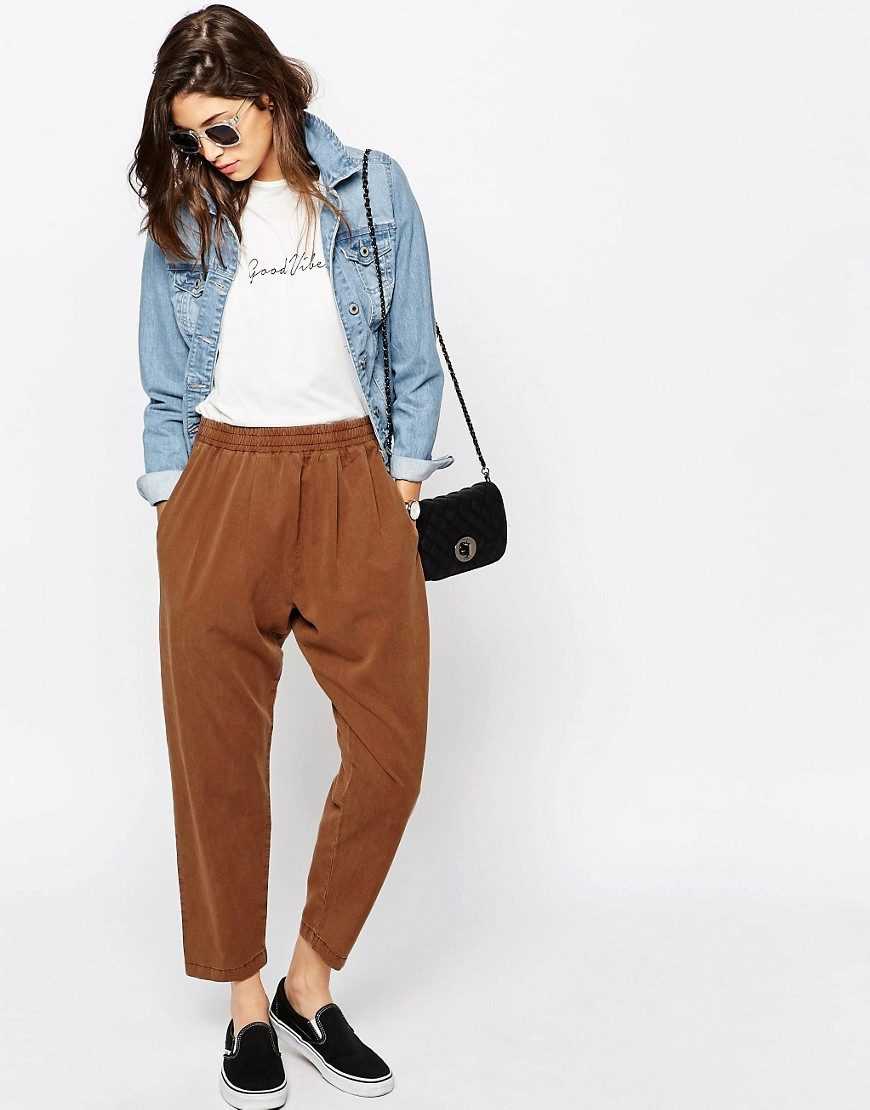 Для верха подойдет все: хлопковые топы, свитеры, водолазки, трикотажные кофточки, блузки.