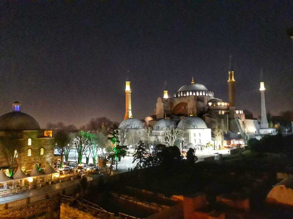 Ночной вид на Айю-Софию с террасы ресторана Севен Хиллс