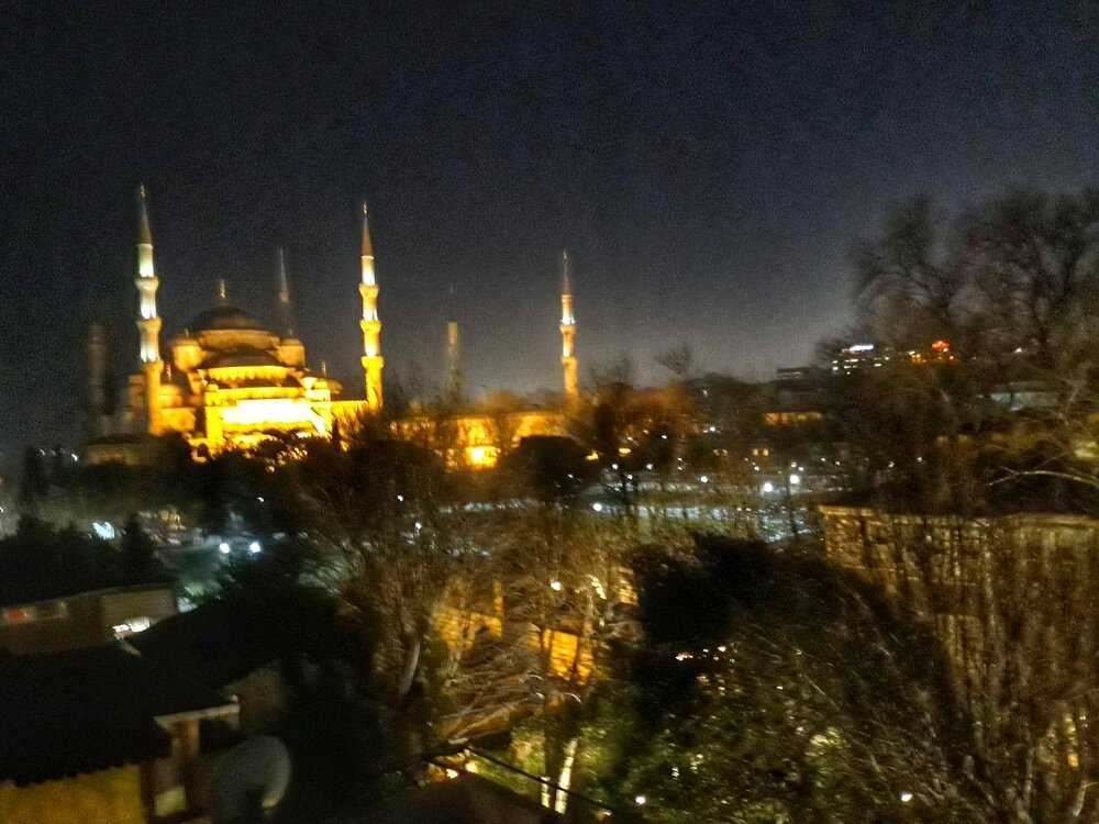 Ночной вид на Айю-Софию с террасы ресторана Севен Хиллс Панорама на Голубую Мечеть с террасы ресторана