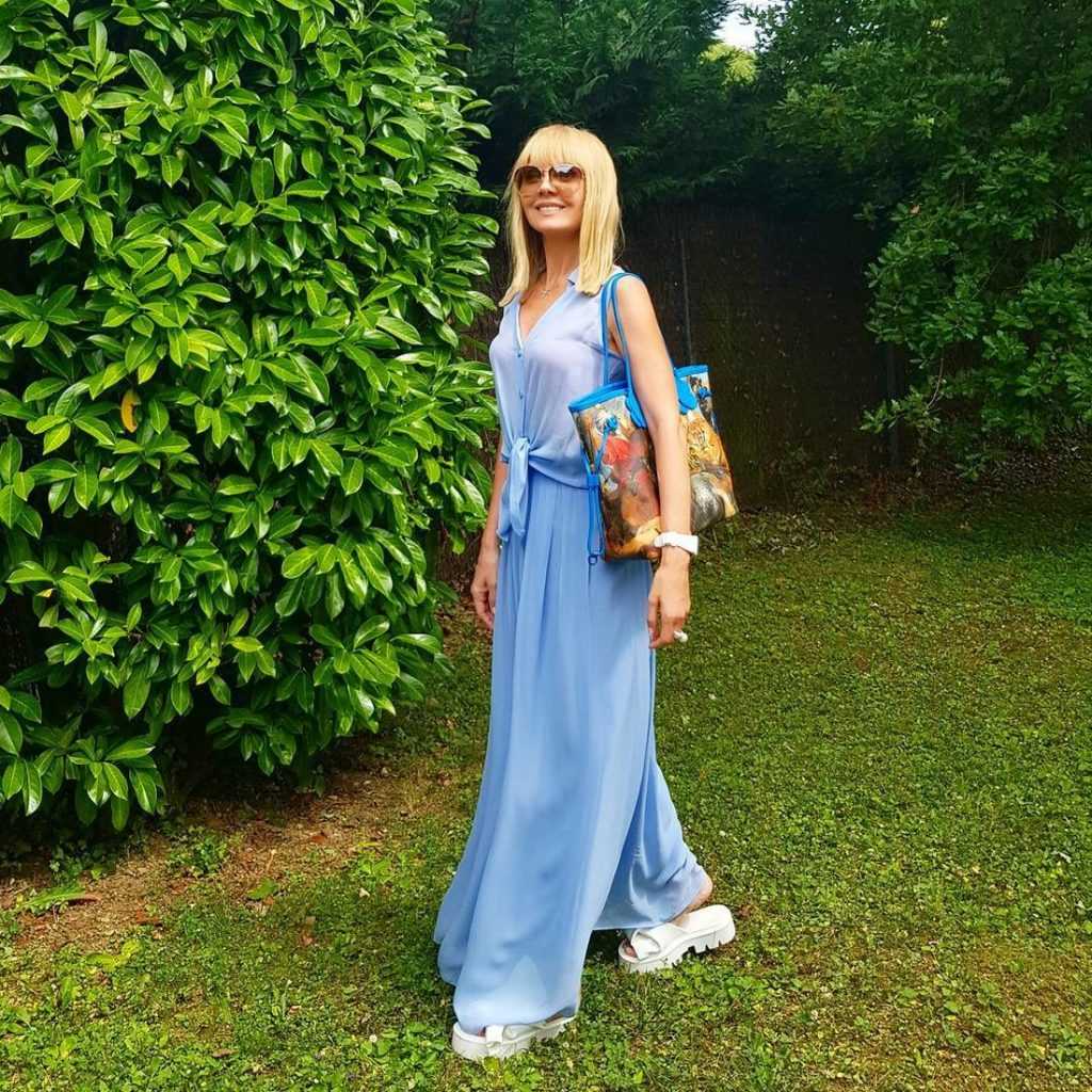 На следующем фото Валерия в женственном синем платье и эффектном колье из золотистых бабочек. Такое украшение дополняет лаконичную одежду.