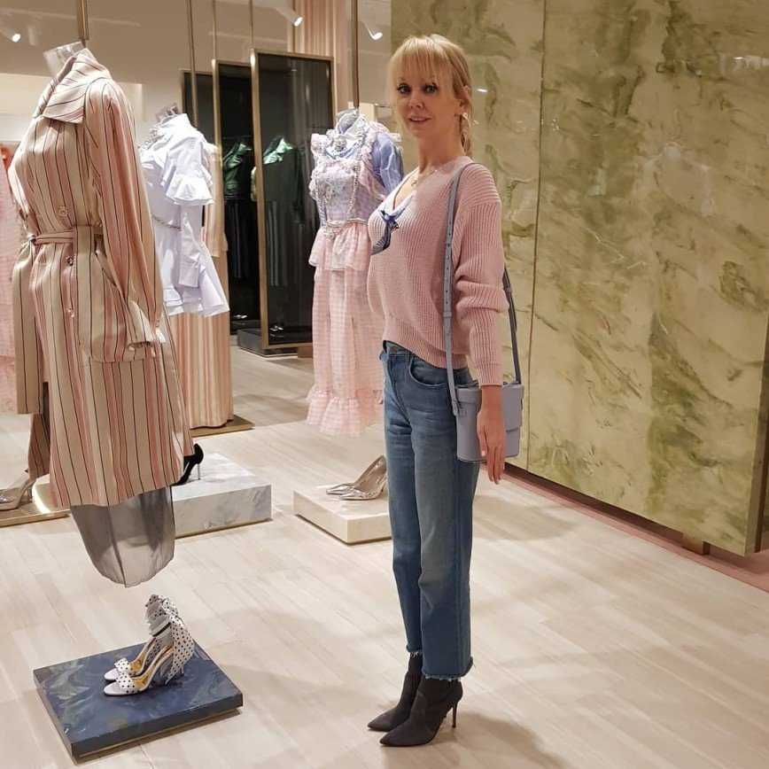 В повседневной жизни певица предпочитает комфортные, практичные, но и оригинальные, женственные вещи. Светлый джемпер с яркой вышивкой — уютное решение для прогулки, домашних посиделок и поездки загород.
