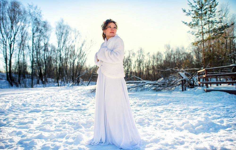 Исходить нужно из особенностей строения фигуры. Как и летний свадебный наряд, зимнее платье бывает длинным и укороченным. В приоритете утепленные варианты наряда.