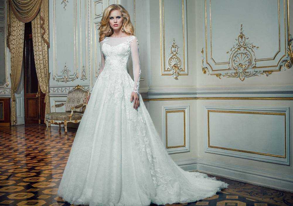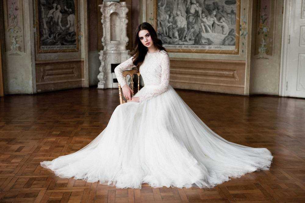 Зимний свадебный наряд закрытого типа предполагает длинные рукава и наличие воротника. В некоторых моделях рукава выполнены из прозрачных тканей и украшены стразами. Закрытое свадебное платье выглядит стильно и скромно. Оно подходит как для регистрации, так и для процедуры венчания.