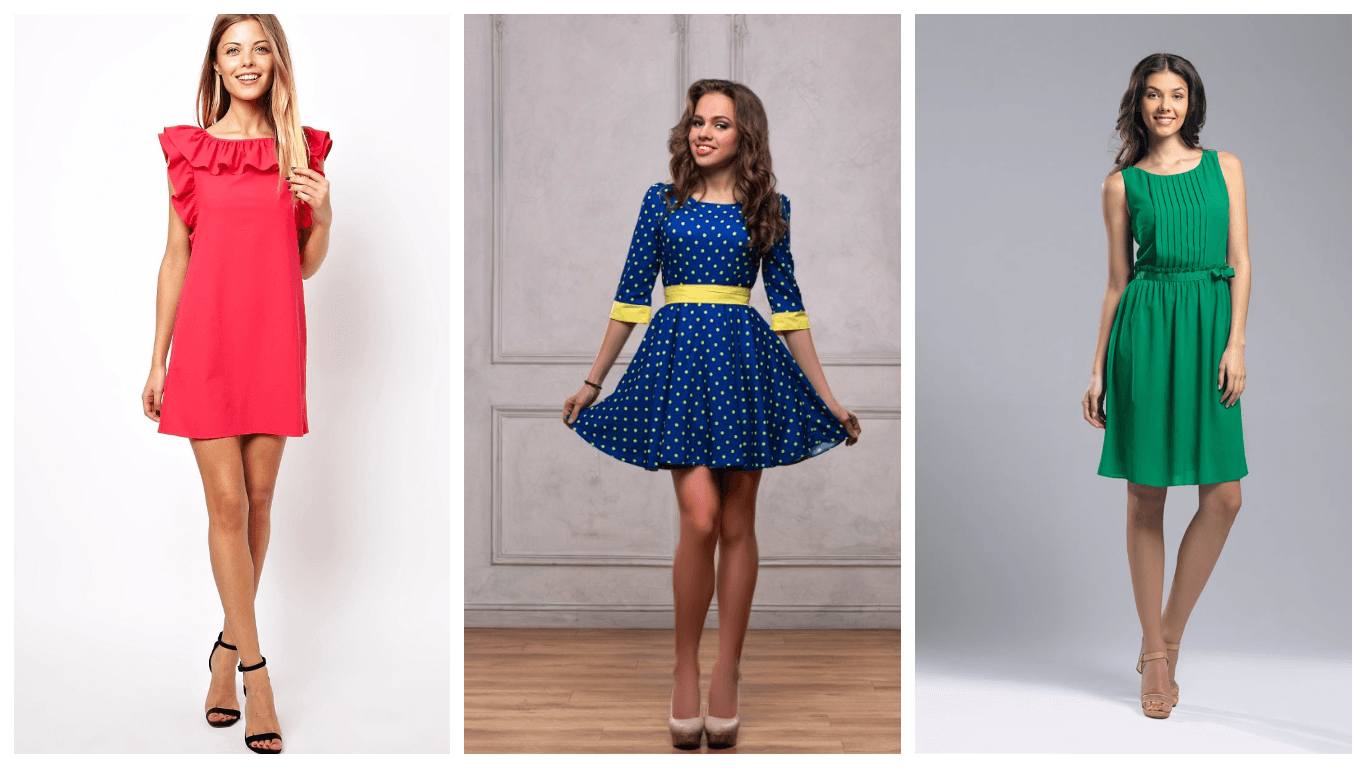 Модная расцветка так же радует широким выбором. Сейчас модные дома не разделяют цвета платьев на сезоны года. В холодных коллекциях можем увидеть легкие яркие платья, в летних сезонах — более сдержанный цвет и теплее материал. Поэтому, каждая модница сможет выбрать материал по душе. Модели стильных повседневных платьев самые разнообразные.