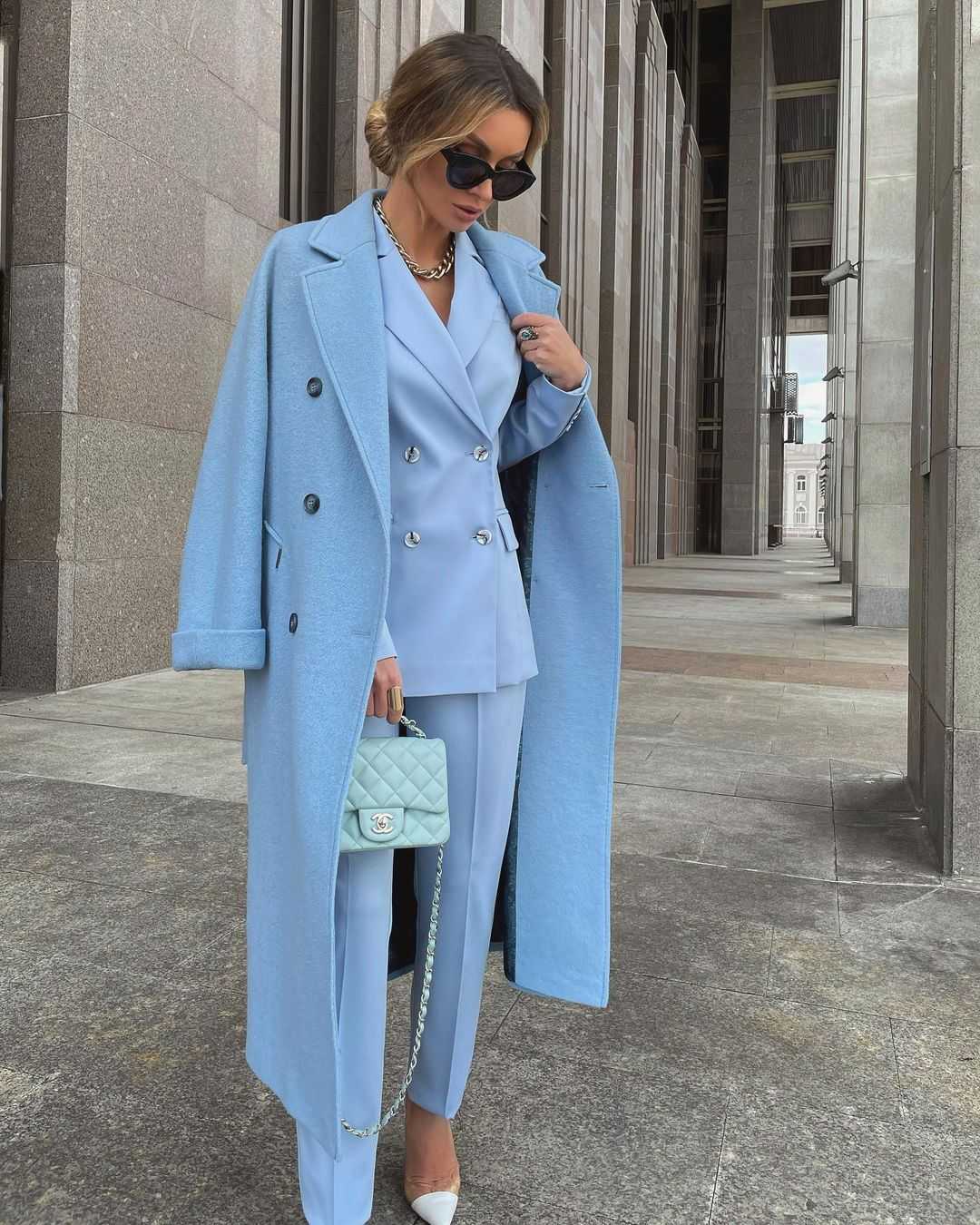 Комплектом total look в оттенках синего едва ли удастся кого-то удивить. Такое решение является достаточно распространенным и безопасным. Если вы попробуете составить вариант в сапфировом цвете, то он будет выглядеть даже интереснее, чем при использовании спектрального синего.