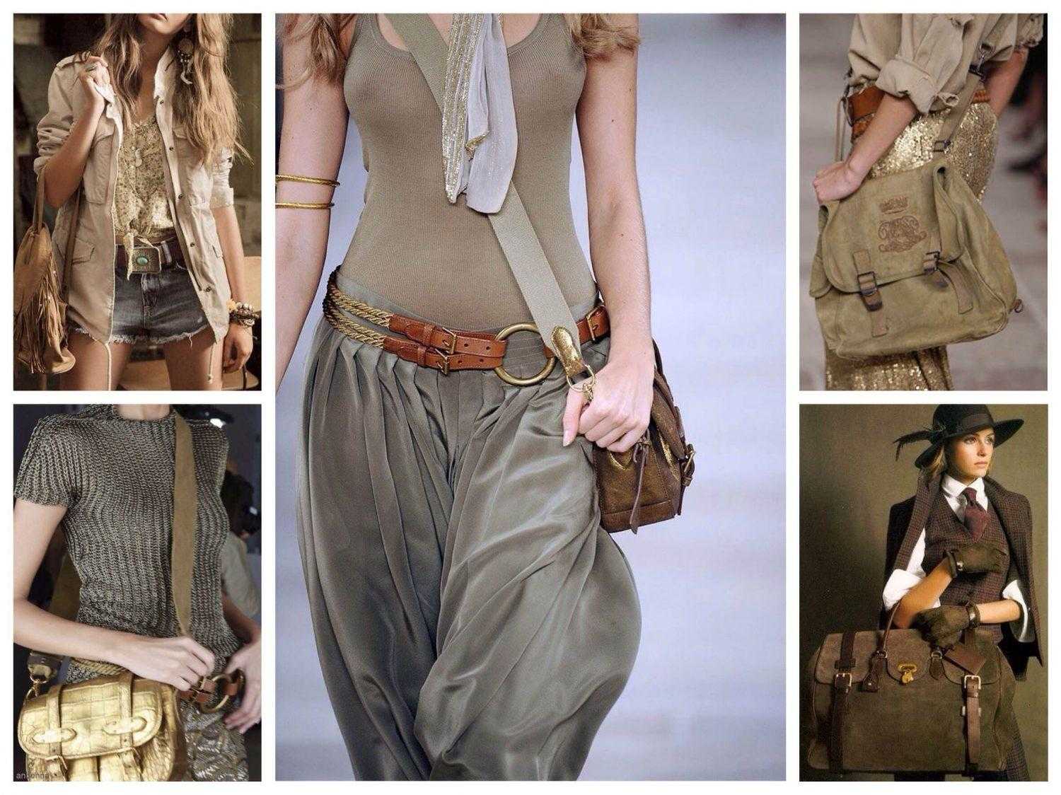 Время идет, но основные черты стиля сафари остаются прежними – натуральные и легкие ткани, широкие кожаные ремни или пояса-веревки, накладные карманы, декоративные потертости, подвороты и анималистичные принты.