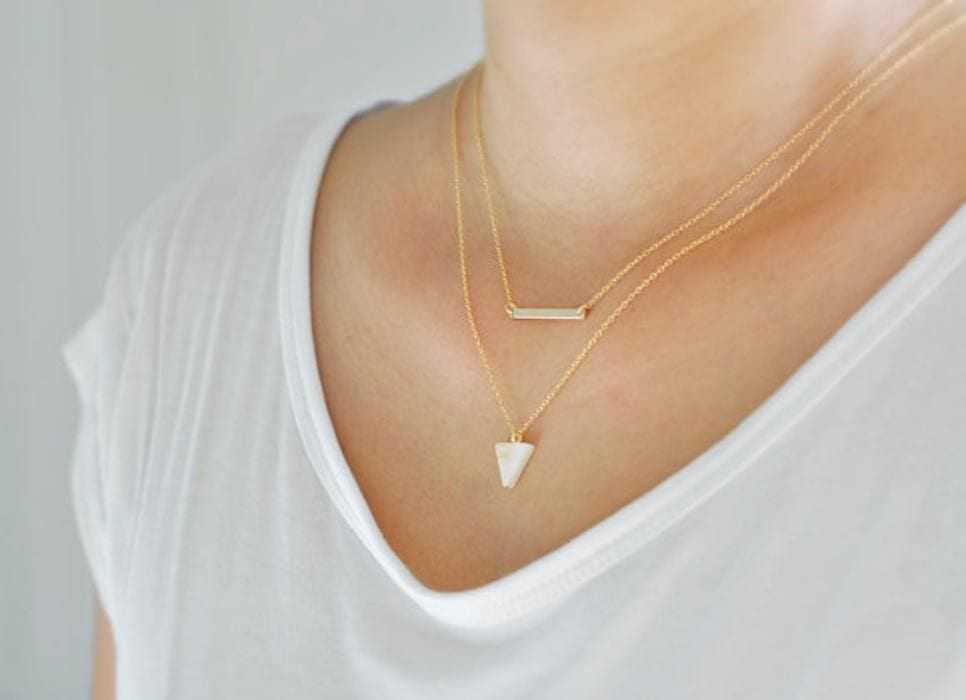 Минималистичные кулоны. Для создания женственных образов используйте легкие украшения в виде кулонов. В них могут быть использованы драгоценные камни, металлы или жемчуг. Актуальным считается сочетание кулона с дополнительными цепочками на шее.