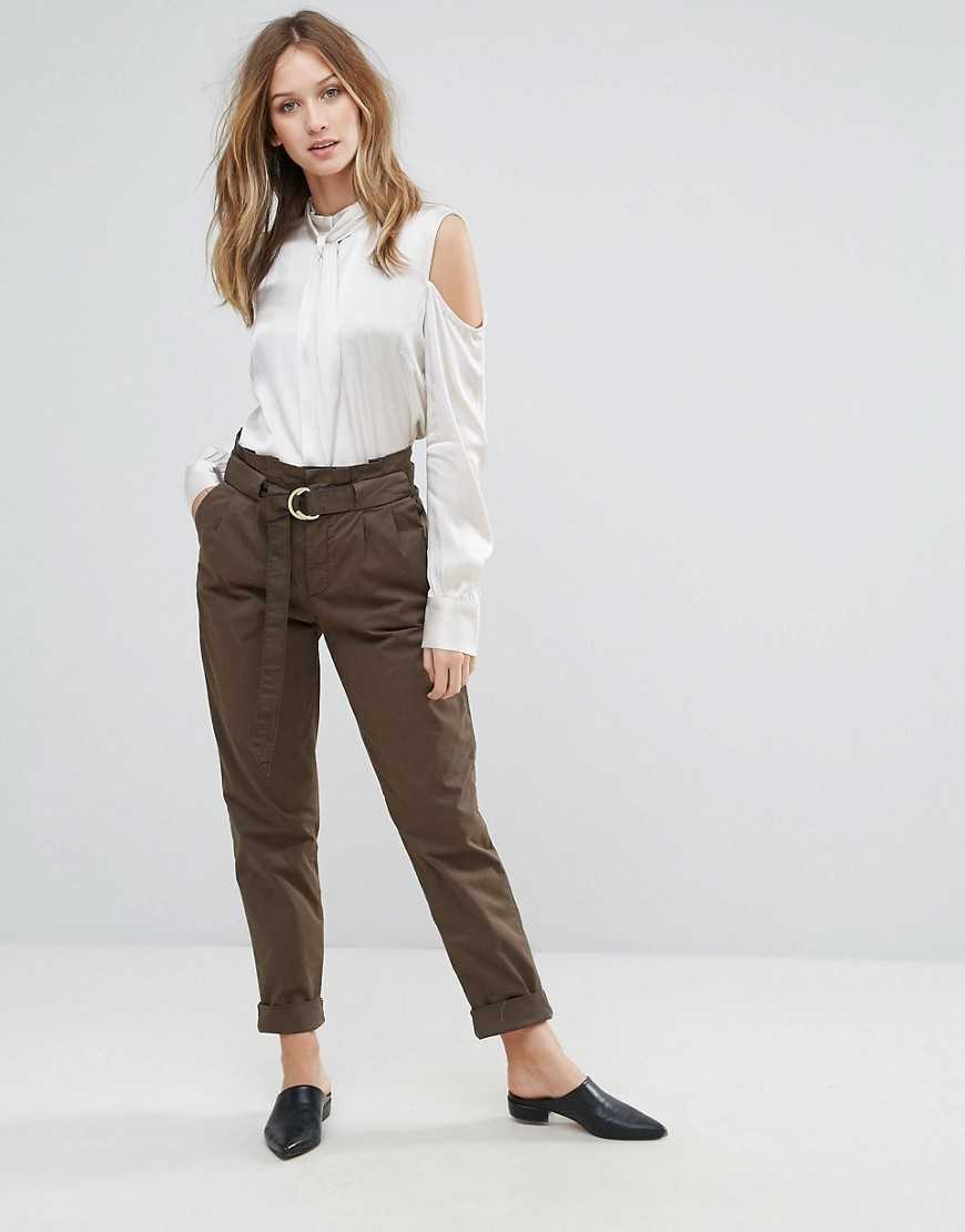 Модные брюки с высокой талией не требуют пояса и ремешка, ведь красиво обхватывая талию, они выглядят лаконично и стильно, не требуя лишних акцентов, которые бы отвлекали внимание от изящного лука