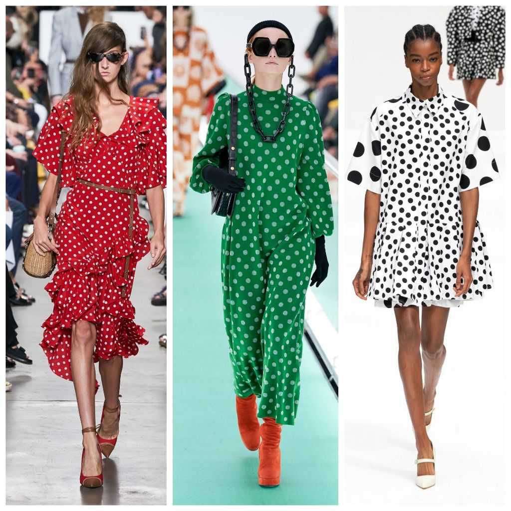 Возможно, предыдущие варианты кажутся вам слишком экспрессивными, а вот классический принт горох – это лаконичная и бессмертная классика. Речь идет не только о красно-белой polka-dot, хотя и она засветилась в коллекции Michael Kors), но и о менее претенциозных вариантах. Это рисунок под далматинца на нарядах Carolina Herrera и более лаконичные варианты, которые можно найти в образах Dries Van Noten и Gucci. Этой весной в моде будет разнообразный горох: крупный и маленький, разноцветный и черно-белый, расположенный хаотично или создающий орнамент. Выберите историю, которая будет близка именно вам.