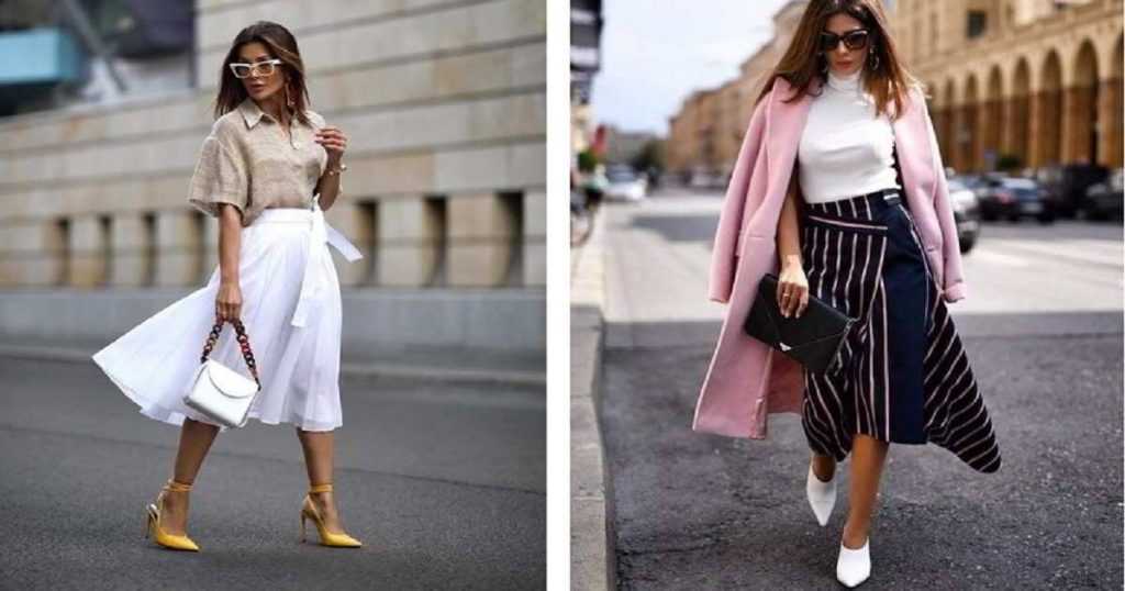 Длина юбки позволяет носить ее с любой обувью. Весной это могут быть сапоги или ботинки на высокой подошве, летом — босоножки и туфли-лодочки. Для офисных образов следует выбирать закрытую обувь.