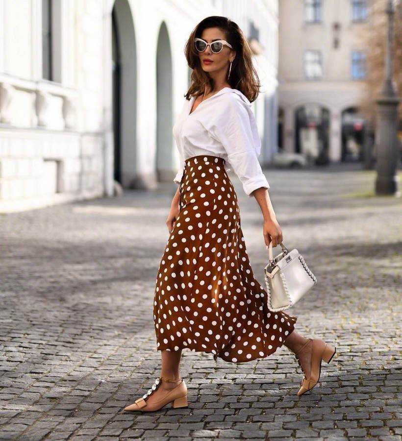 Широкая макси-юбка может сочетаться с повседневным топом или вечерним нарядом с шелковой майкой и каблуками.