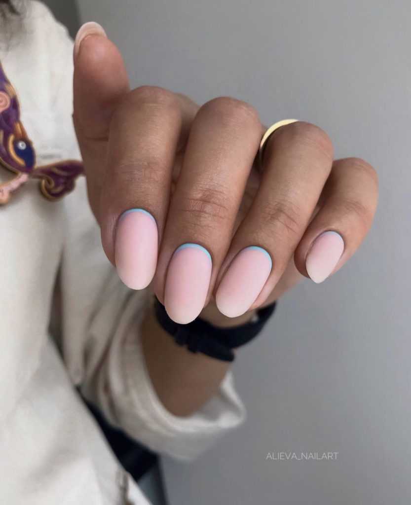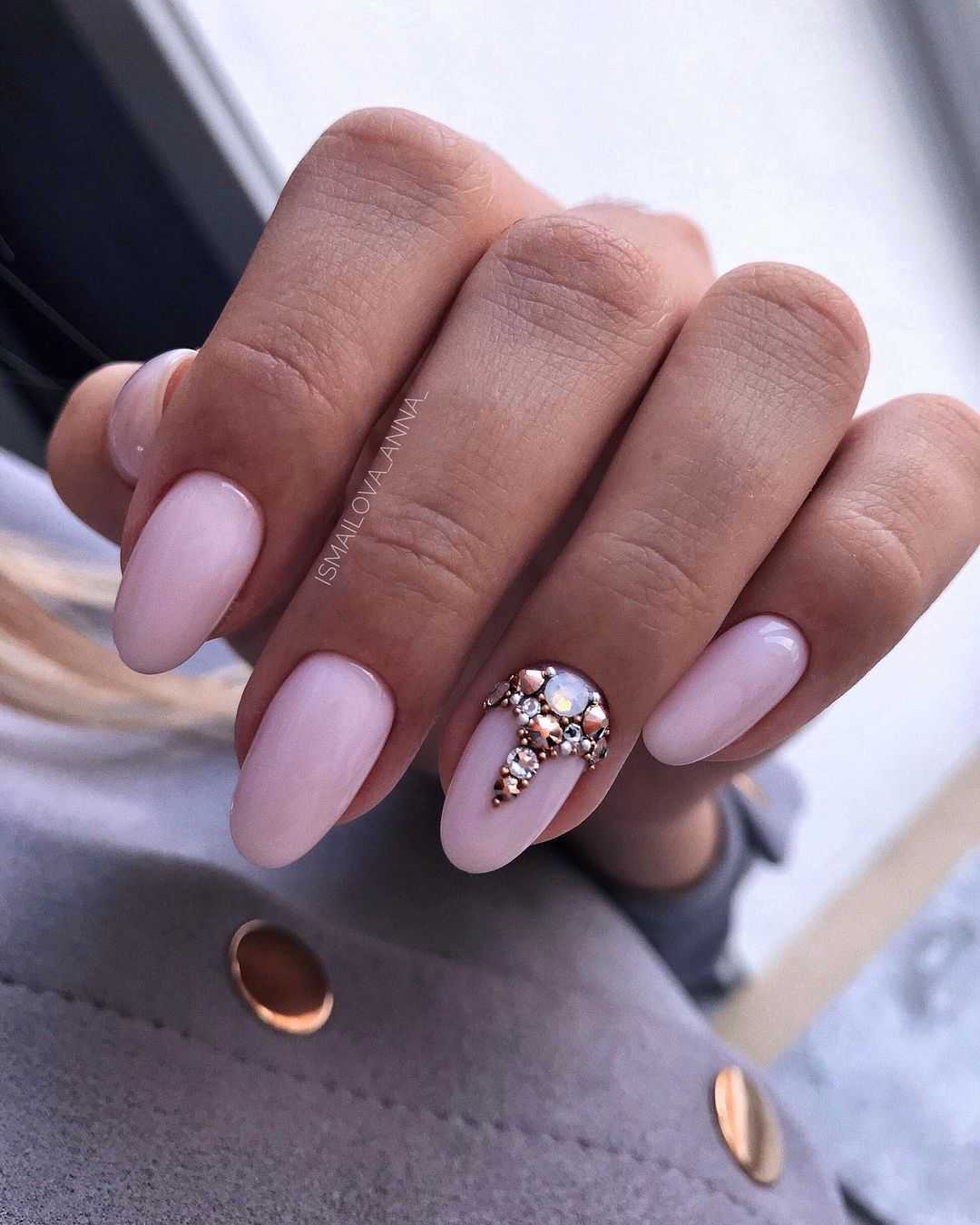 Нежный маникюр в пастельных тонах не будет бросаться в глаза, если в нем присутствует немного декора, хорошо подобранного в тон и цвет. Часто для офисного маникюра используется стиль омбре с незаметным переходом одного нюдового оттенка в другой. При этом оттенки могут переходить как из теплого в холодный, так и оставаться в одной гамме.