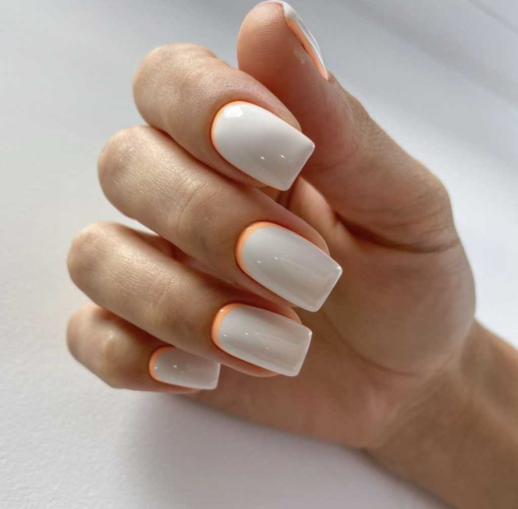 Для создания модных образов этого сезона мастера используют перламутру, матирующие лаки и блестки. А мега-модными летом 2022 года считаются комбинации нюдовых цветов с яркими деталями. Это может быть бежевый френч с желтой «улыбкой», розовый фон с золотым декором и, конечно, белая основа с геометрическим, абстрактным или графити-рисунком.