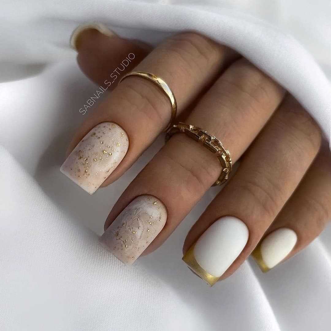 Если очень сложно определиться, тогда выполняйте маникюр бежевого цвета с сочетанием двух текстур. Это решение выглядит невероятно гармонично и привлекательно.