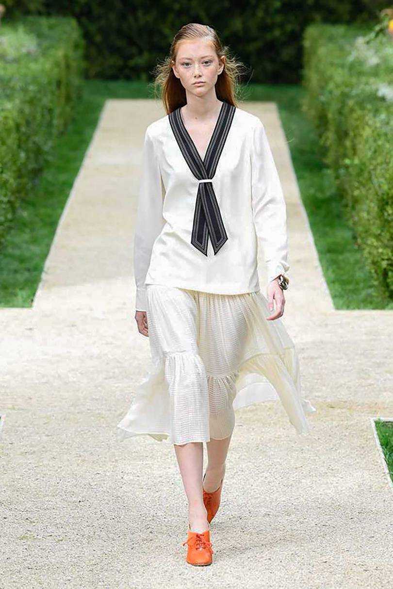 Удивляют сейчас не броским декором, а сложностью кроя. Такой крой часто создает визуальный обман. Кажется, что поверх короткой юбки надета длинная. Или кто-то специально завязал «по-походному» рубашку сверху юбки. Комплекты-«обманки» представили бренды Chloé, Nicole Miller, Preen by Thornton Bregazzi.
